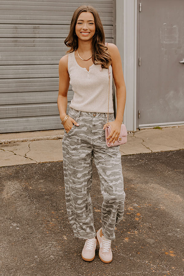 The Sadie Midrise Vintage Wash Barrel Jean in Grey Camo