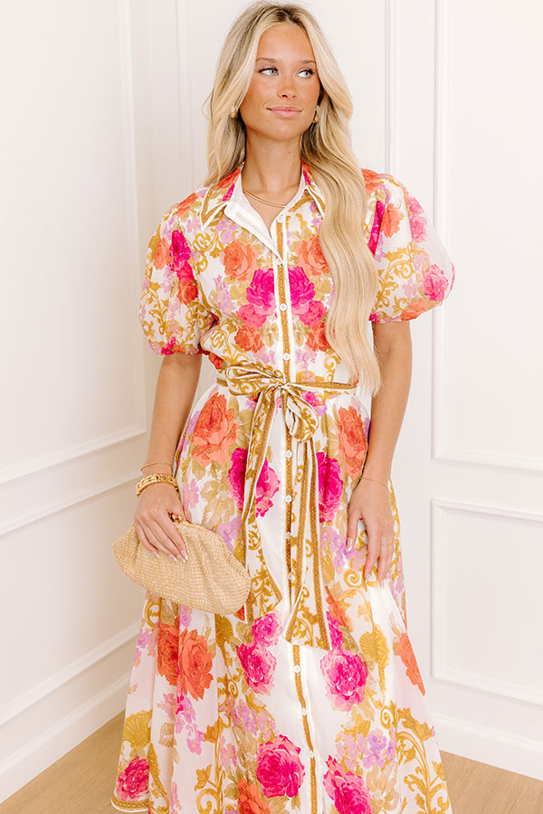 - This floral midi has an elegant vibe! With sweet puff sleeves and a collared neckline, it's perfect for elevated everyday style. From brunches to special events, this cutie keeps you looking fabulous.