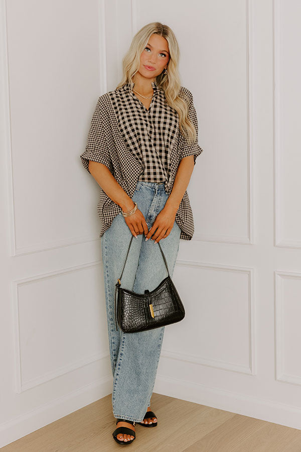 Charming Views Oversized Gingham Top in Warm Taupe