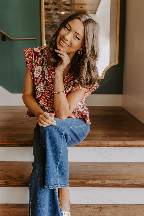 Merlot Whisper Floral Top in Wine