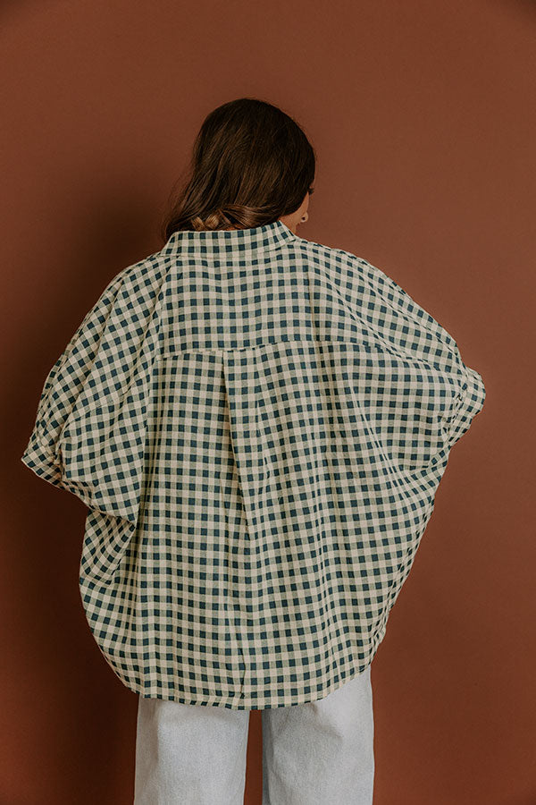 Picnic At The Park Oversized Gingham Button Up in Hunter Green