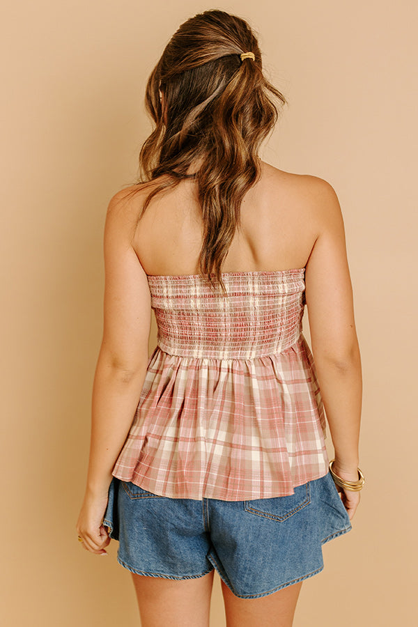 - Get into harvest season style with this plaid top! The tie detail and strapless cut give this seasonal favorite a flirty vibe.