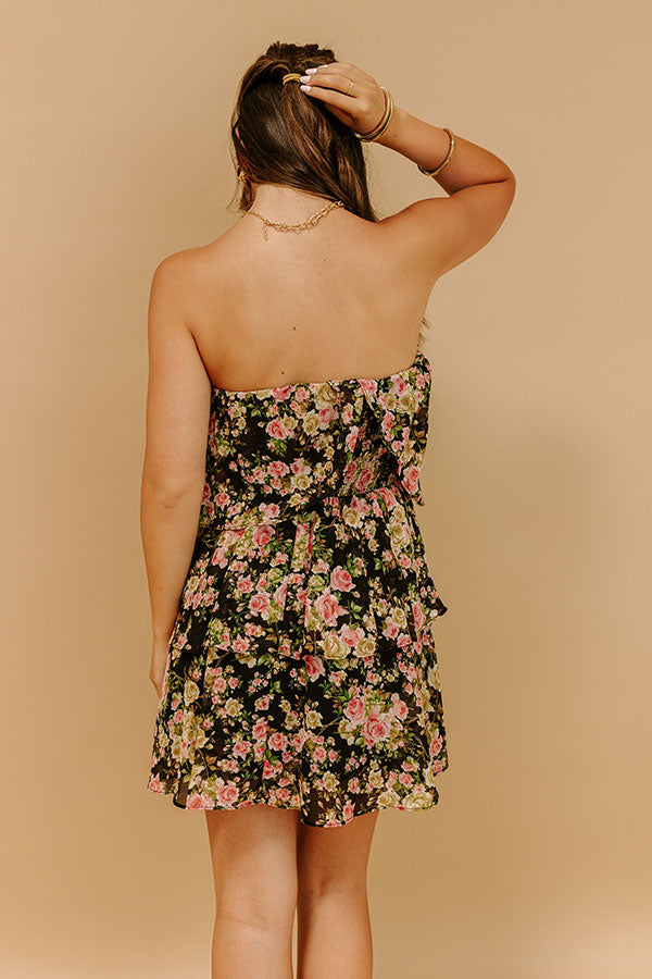 - Date night is calling, and this floral mini is the answer! The strapless neckline and tiered design bring all the flirty vibes.