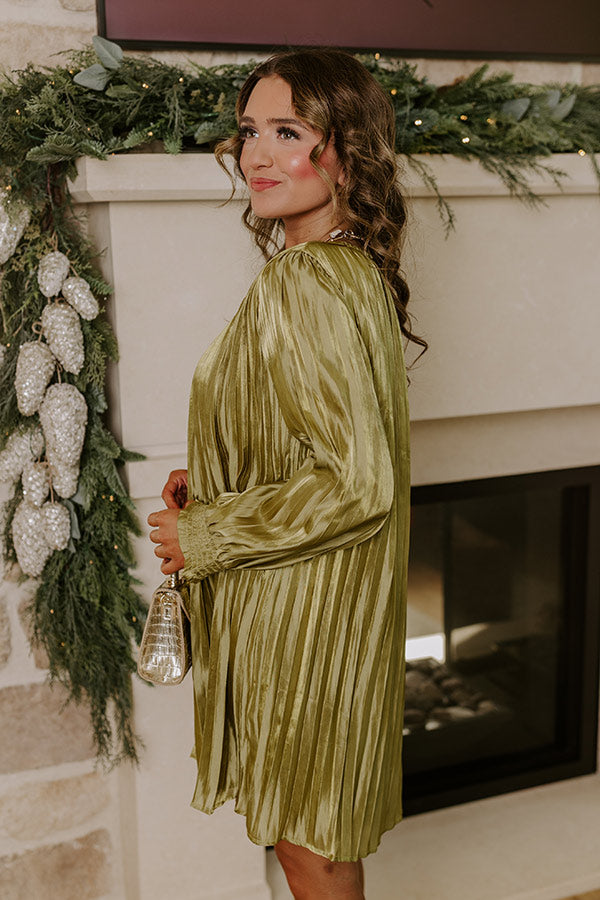 Toast To Fabulous Satin Pleated Mini Dress in Chartreuse
