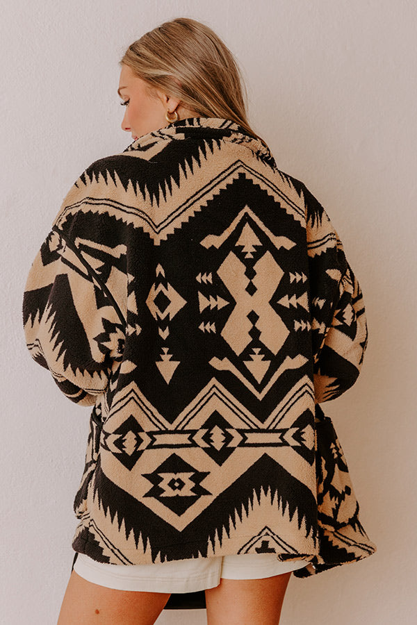 - Sweet bonfire moments feel even cuter with this oversized sherpa jacket in the mix! Its playful print adds instant charm to your casual style, making it a must-have pick for trendy, everyday looks.