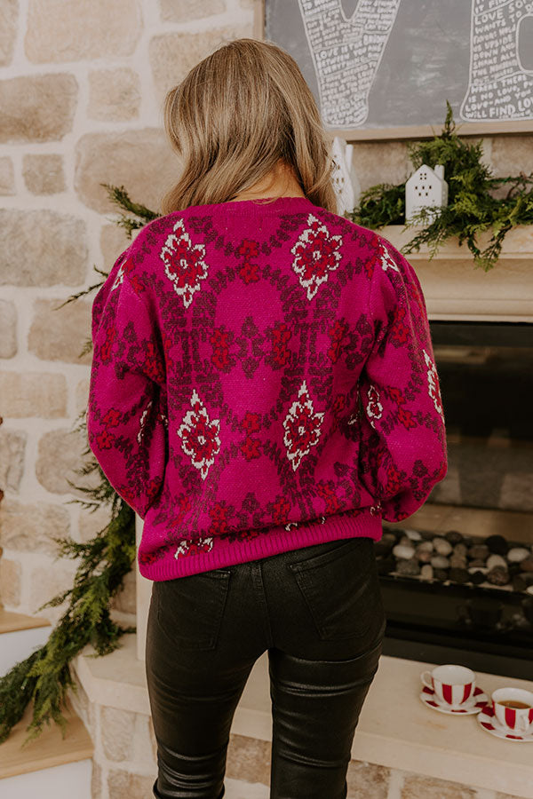 - Bring a pop of floral charm to your seasonal style with this pretty knit sweater! Perfect for adding a little sweetness to your look.