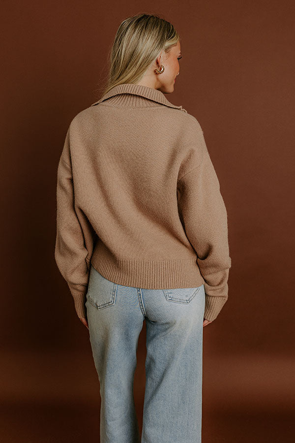 Brisk Stroll Quarter Zip Knit Sweater in Iced Mocha