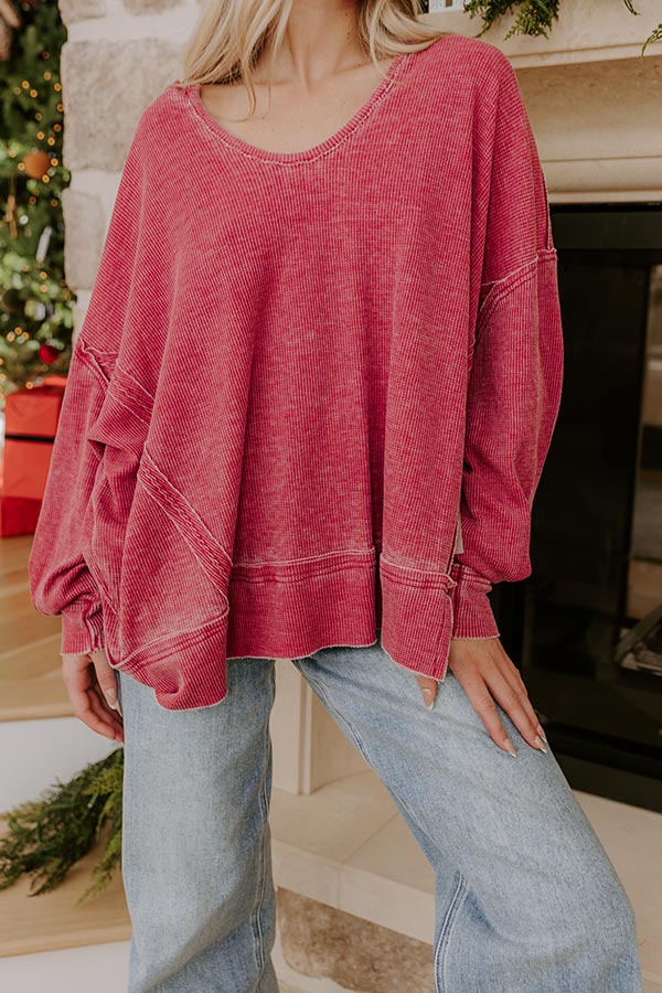 Relax And Reset Waffle Knit Oversized Tee in Crimson