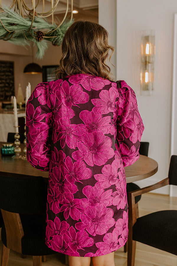 Timeless Treasures Floral Jacquard Mini Dress in Fuchsia