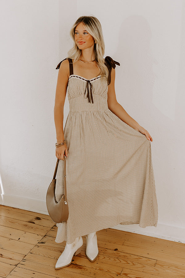 - This gingham midi brings a playful vibe with its lace trim and cute bow accents. From picnics in the park to apple orchard strolls, it's ready to twirl through all your daytime plans!