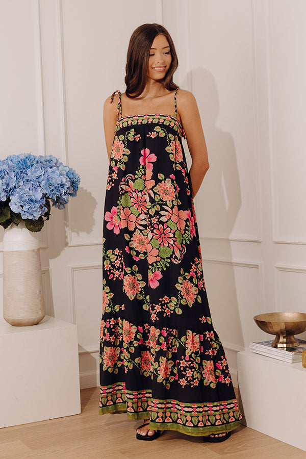 Capri Villa Floral Maxi Dress in Black