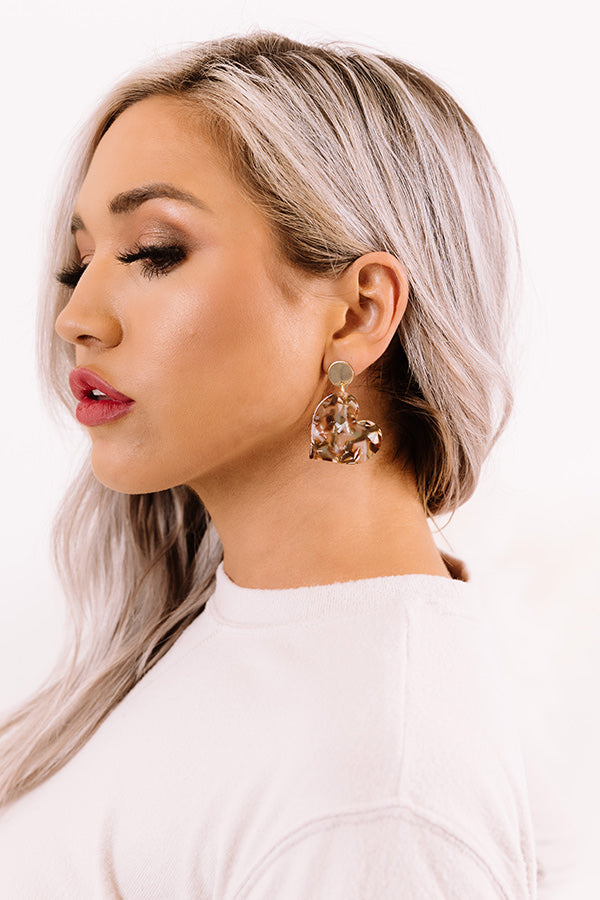 Acrylic Heart Earrings in Brown