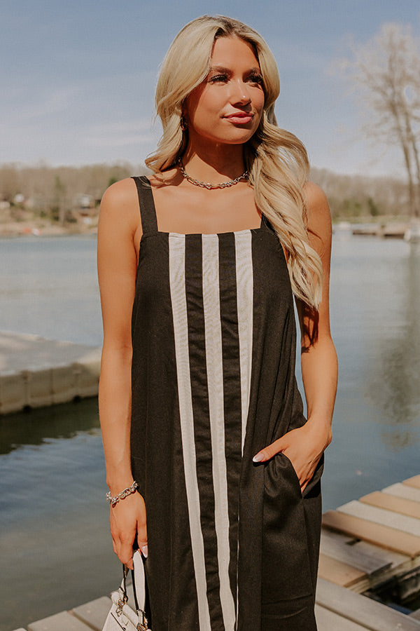 Beachside Bliss Linen-Blend Midi Dress in Black