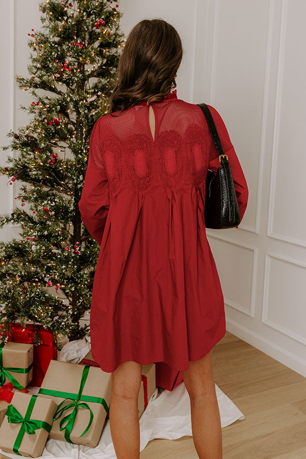 Chic Agenda Lace Applique Mini Dress in Crimson