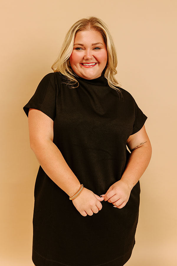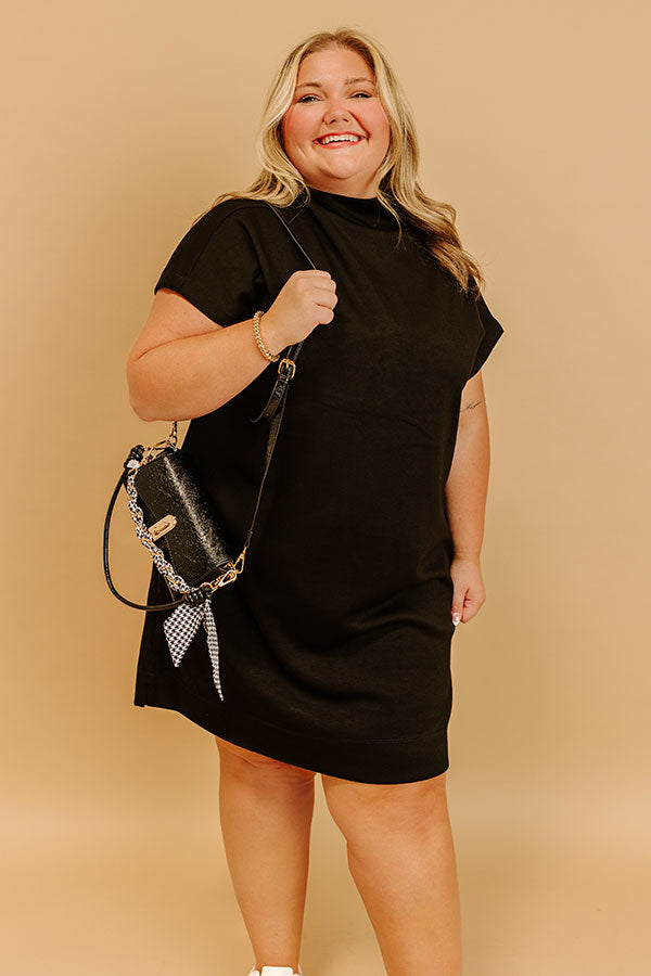- Chic and effortless, this mini dress with a mock neckline is made for downtown days. A sleek essential for curating your city-ready wardrobe.