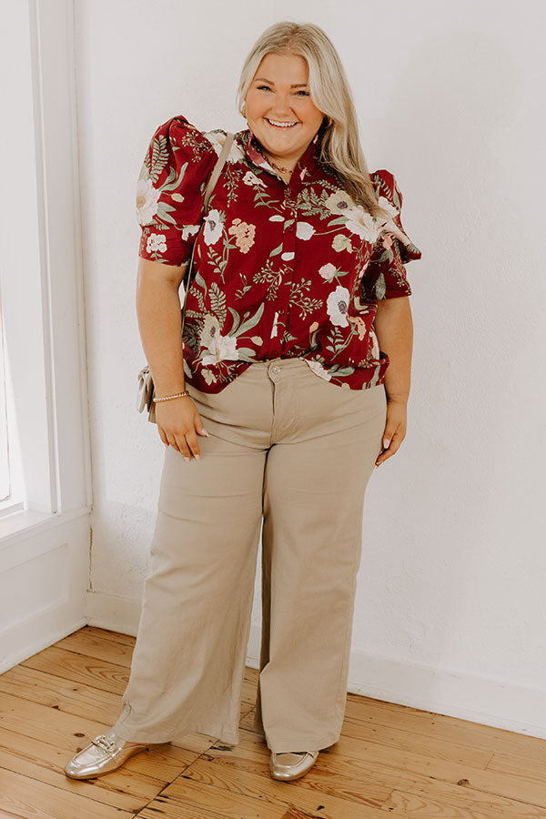 Dreaming Of Dahlias Button Up Top in Wine Curves