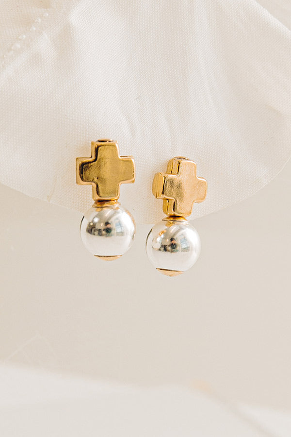 Add a touch of modern elegance to your everyday look with these two-toned cross drop earrings. Featuring a gold-tone cross stud paired with a sleek silver-tone ball drop, this design offers a stylish contrast that feels both classic and contemporary.