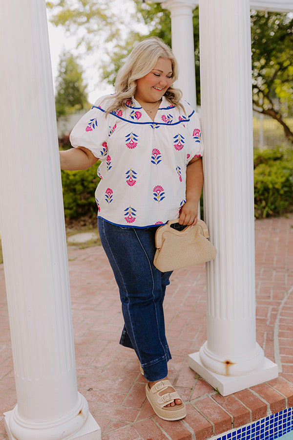 Joyful Bloom Floral Embroidered Top in White Curves