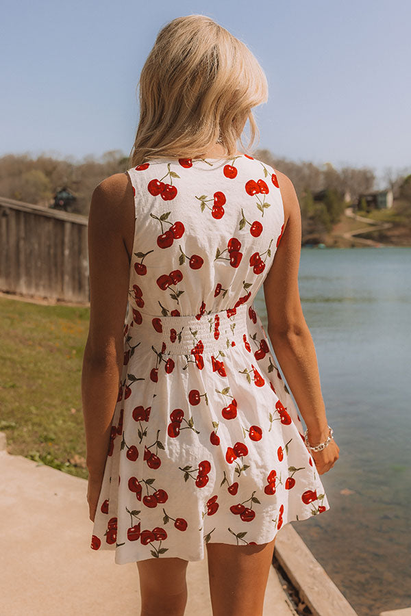 - You'll look sweeter than pie in this flirty cherry print mini dress! This flattering piece brings playful energy to your wardrobe with a playful twist that's made to turn heads.