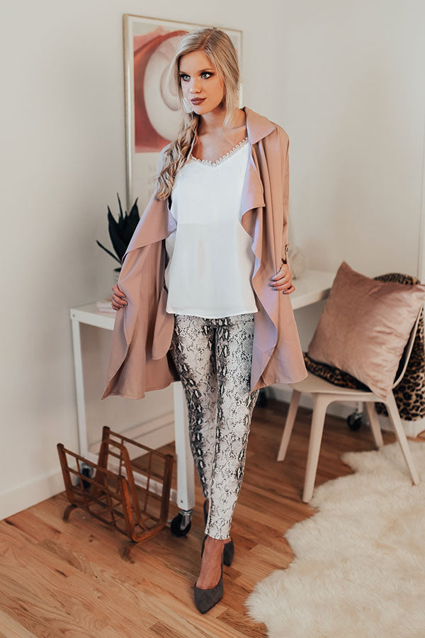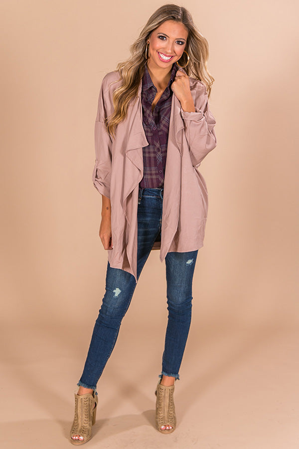 The "Adventure Awaits Jacket" is the perfect lightweight jacket for any girl on the go! This jacket is like your favorite cargo jacket & trench coat combined, with quarter length roll-tab sleeves & an ultra relaxed draped open front silhouette (with hidden side pockets.) Layer this jacket over any of your favorite basics, to add a fresh new spin to any of your long-time favorites.