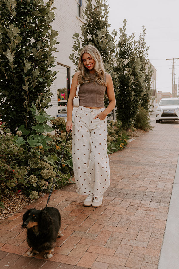 Spotted Around Town High Waist Barrel Leg Jean in Mocha