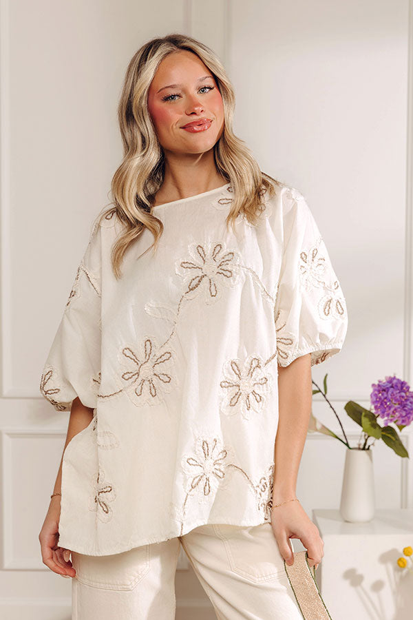 Sweet Daydream Floral Embroidered Top in Cream