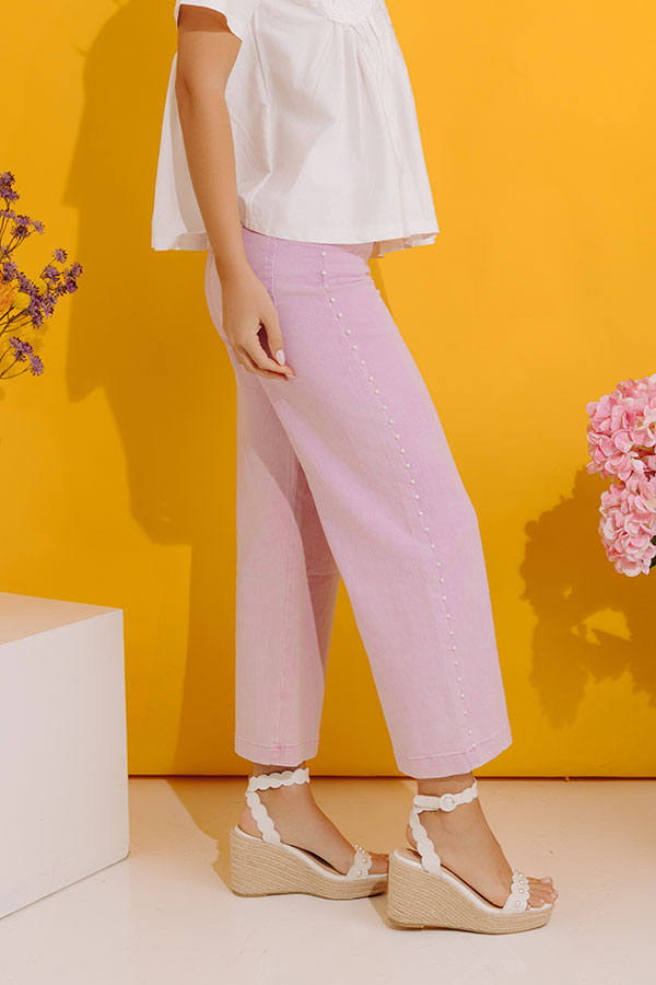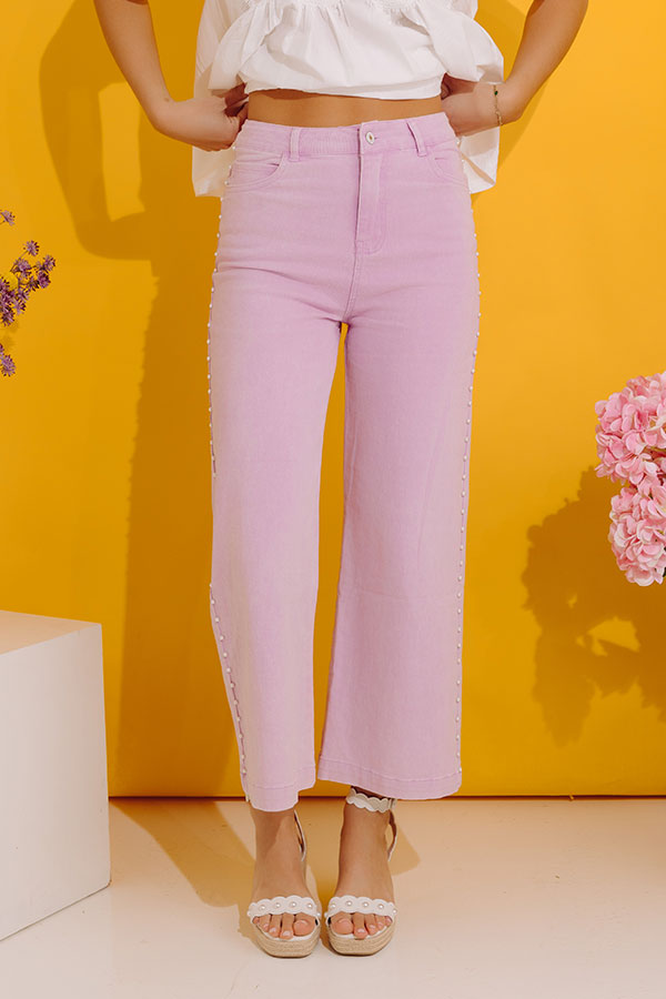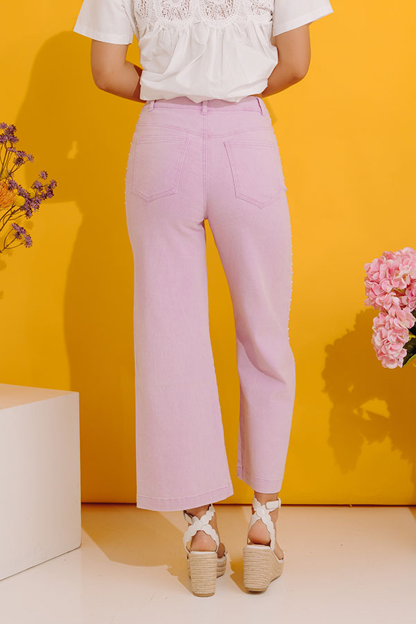 The Lorelai High Waist Pearl Embellished Jean in Lavender