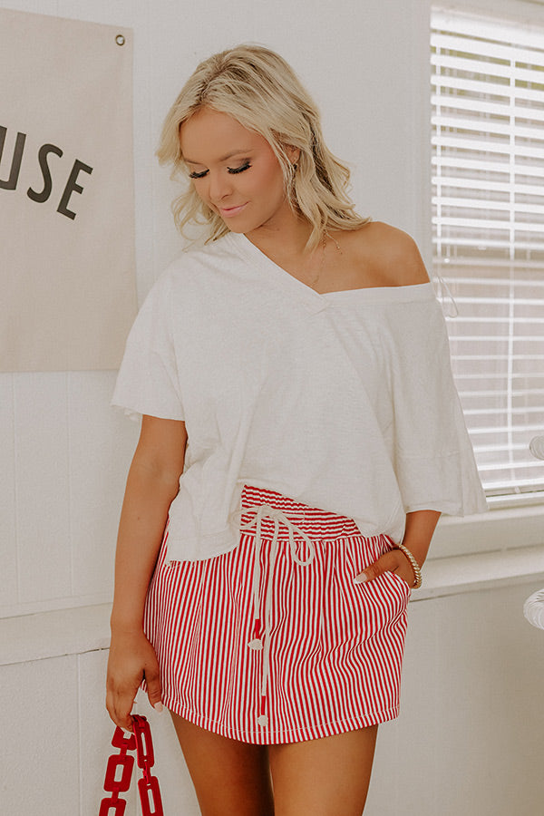 The Sarah High Waist Stripe Skort in Red