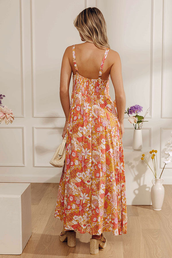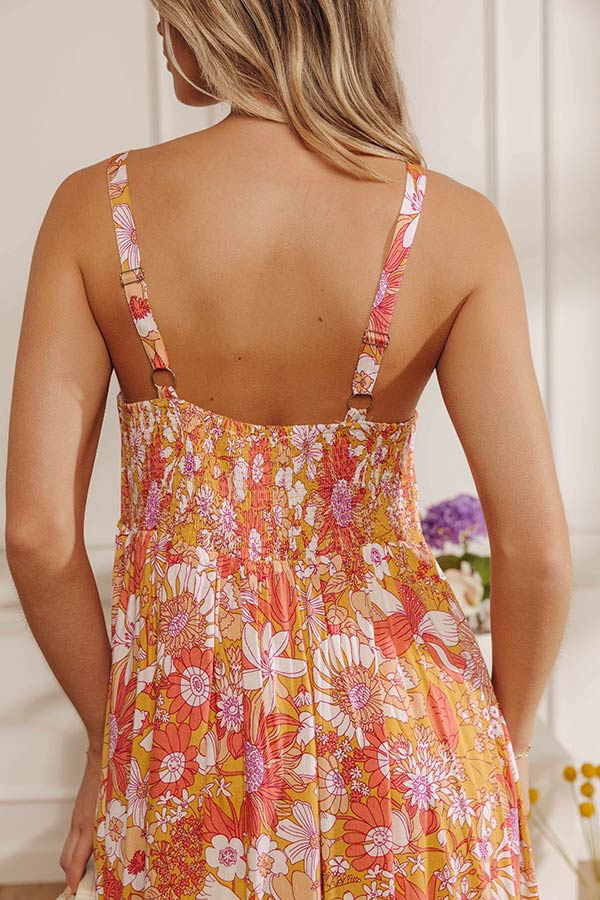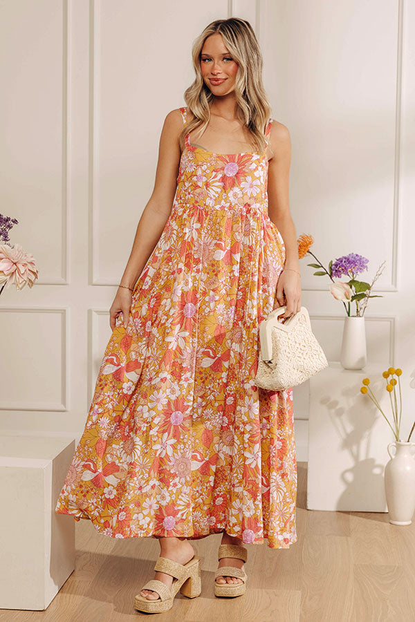 Tranquil Time Floral Midi Dress in Golden Honey