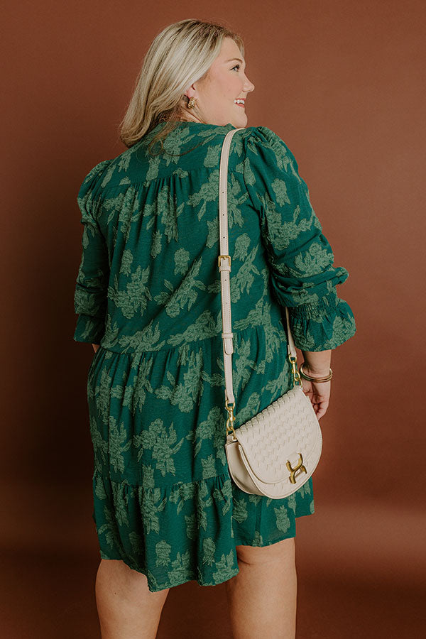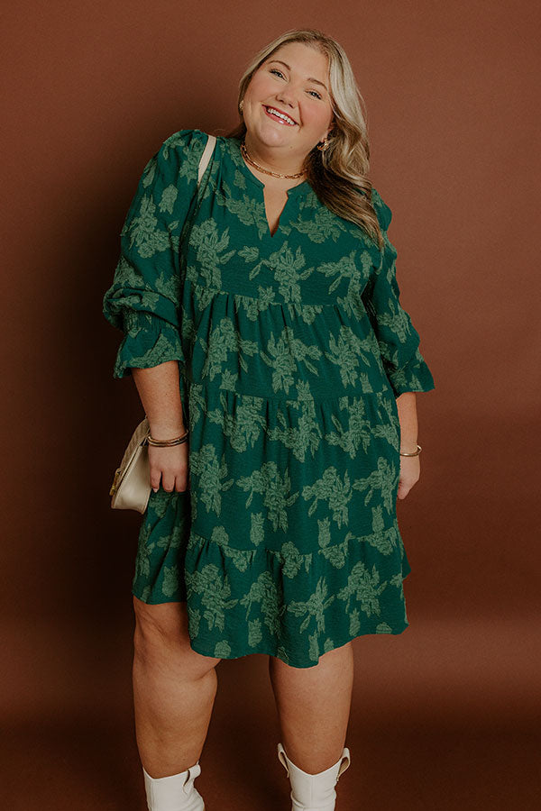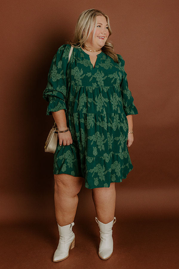 Tribeca Twilight Jacquard Babydoll Mini Dress in Hunter Green Curves