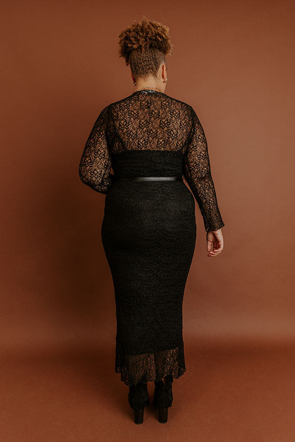 - This fabulous lace maxi dress brings all the chic vibes! Featuring a beautiful floral design and a sleek faux leather belt, it effortlessly elevates your look with timeless style.