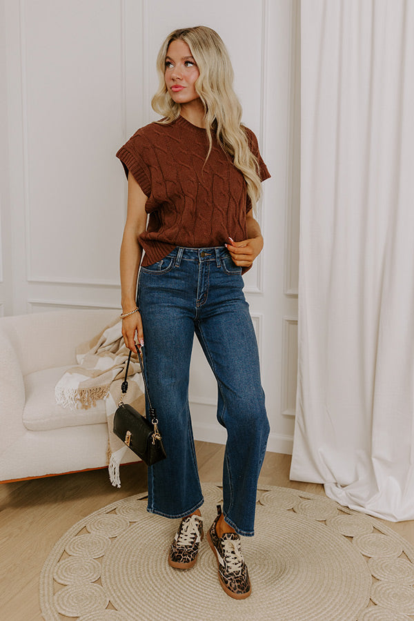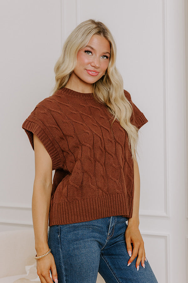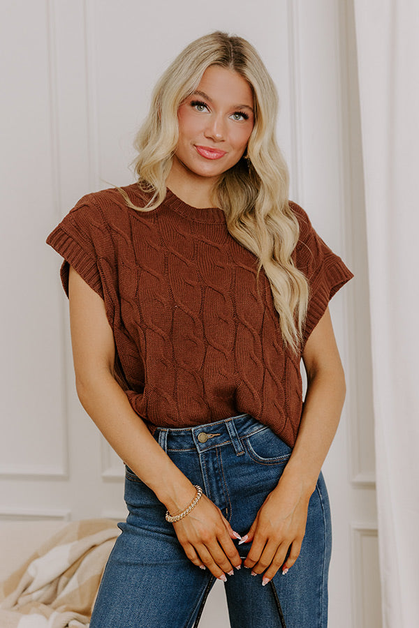 Uptown Ease Cable Knit Sweater Top in Chocolate