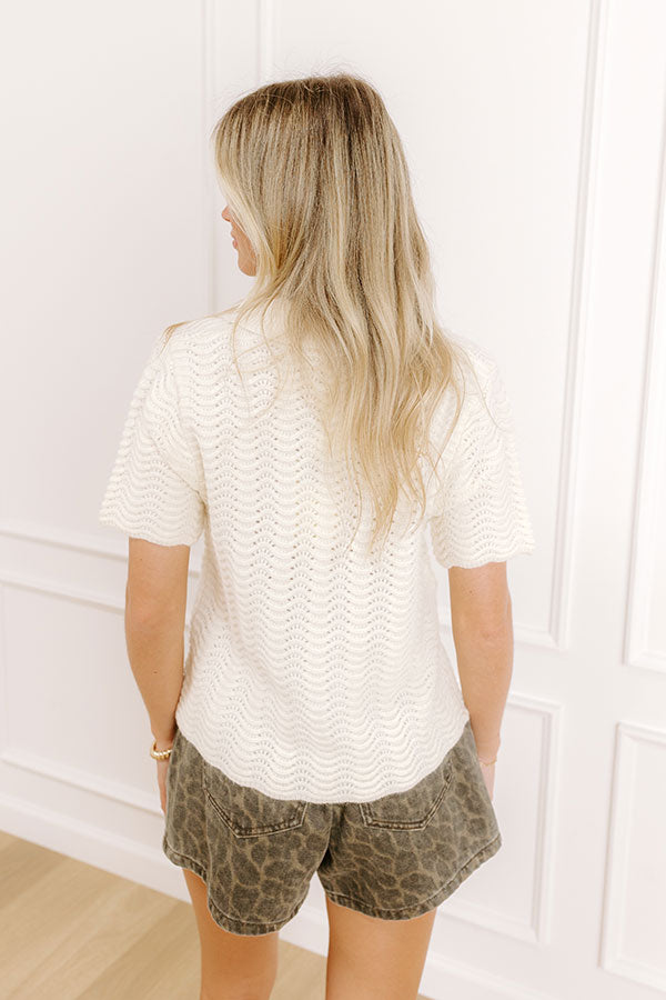 Urban Espresso Pointelle Knit Sweater Top in Cream