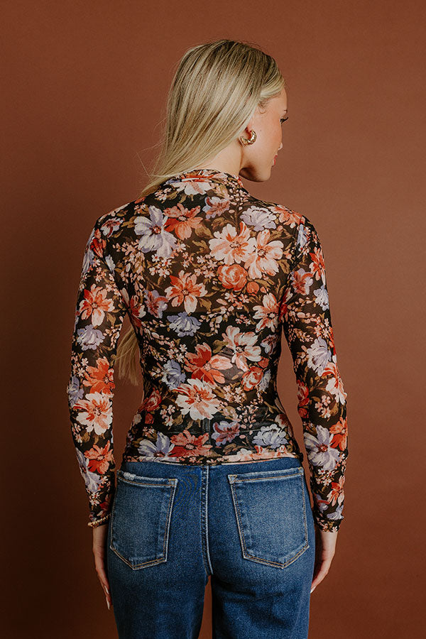 Vineyard Luxe Floral Mesh Top