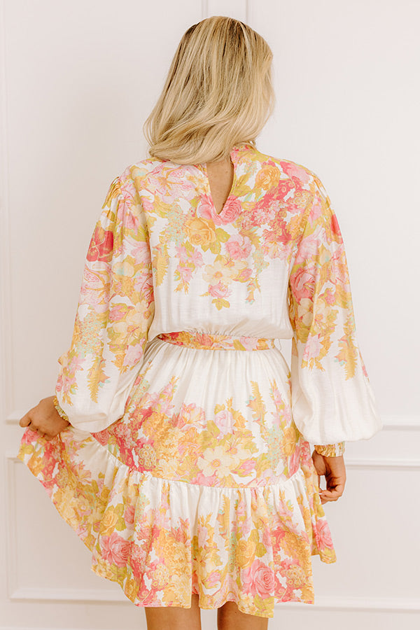 - Bring out your sweet side in this floral mini dress! With a stylish mock neckline and a colorful design, it's the perfect mix of charm and trendiness.