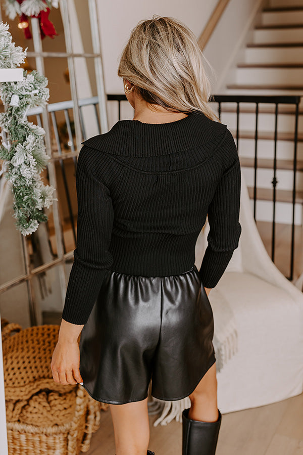 Keep it simple but stylish with our pretty black 'Talk Of Tinseltown Top' featuring soft and stretchy material with subtle vertical ribbed texturing, a v-cut neckline with a flat collar, long loose sleeves, and a relaxed silhouette that falls into a straight hemline!