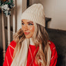 Make a cozy debut this fall with this cute cream colored beanie featuring stretchy and thick knit material and a rolled silhouette!