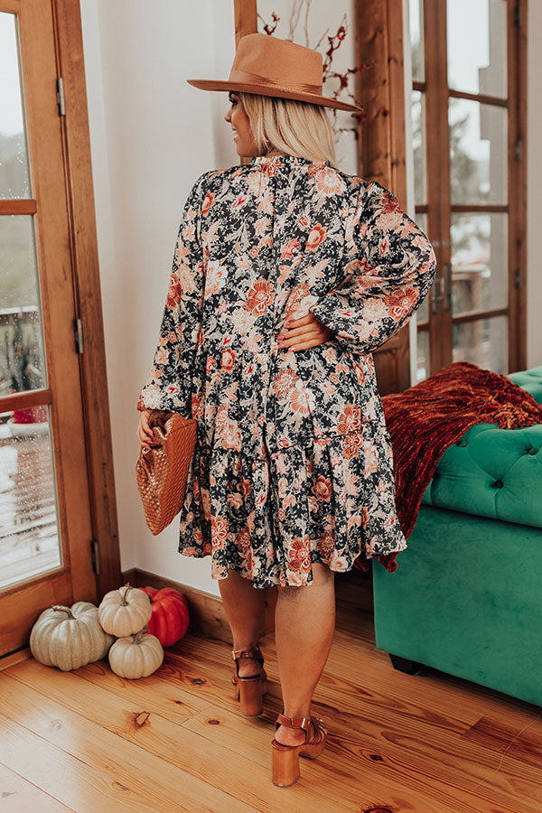 Your style will be simply flourishing when you wear this beautiful dark teal hued plus size shift dress featuring lightweight flowy material patterned with a bold light pink and rust hued floral print, a button down front with a collared v-cut neckline, long loose sleeves, and a relaxed silhouette that falls into a straight mid-thigh length hemline!