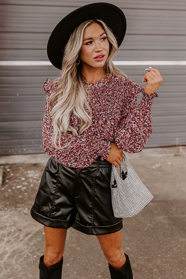 Welcome spring in style with our darling 'Vivid Views' shift top featuring lightweight flowy material patterned with a small but intricate dark and light blush hued floral print, a smocked bodice with a high neckline, long bishop sleeved with accent ruffles on the shoulder and fitted smocked cuffs, a keyhole accented upper back with a button closure, and a relaxed silhouette that falls into a straight hemline!