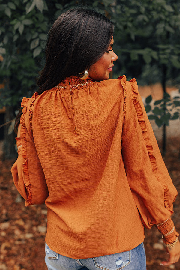 - Long, loose sleeves with a ruffle detailing and smocked cuffs