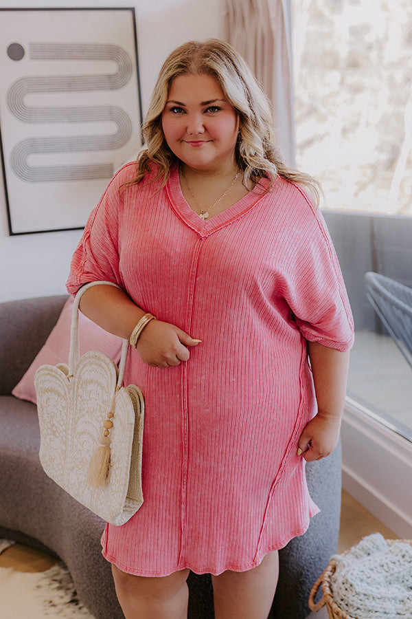 Girls Brunch Ribbed T-shirt Mini Dress in Blooming Dahlia