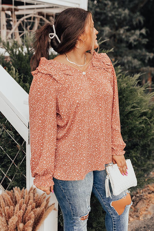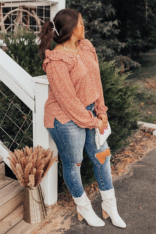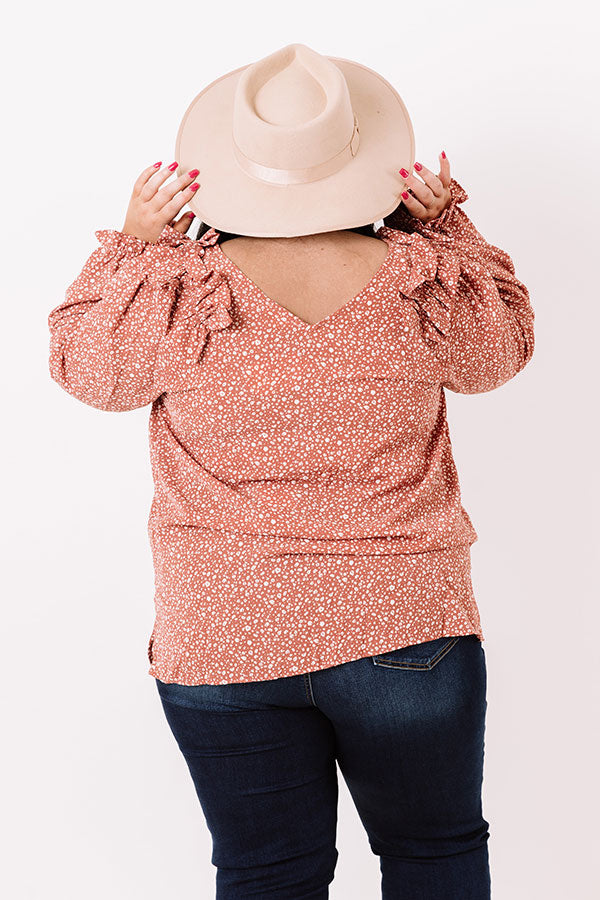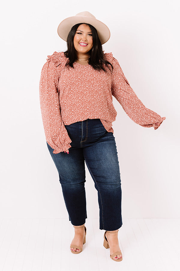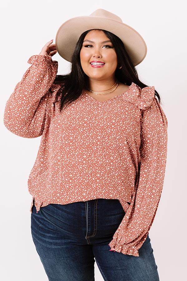 Plus Size - We have no doubt you will love this charming dark blush hued shift top for the rest of your life with its lightweight material, small white leopard print, a v-cut neckline and upper back, long loose sleeves with ruffled shoulder accents and elastic band cuffs, and a relaxed silhouette that ends in a straight hemline with side slits!