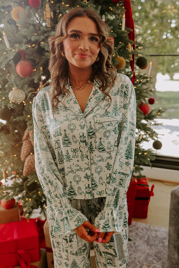 - Get into the Christmas spirit with this darling satin pajama top! Perfect for cozy holiday nights, its festive design makes it a must-have for your seasonal sleepwear collection.
