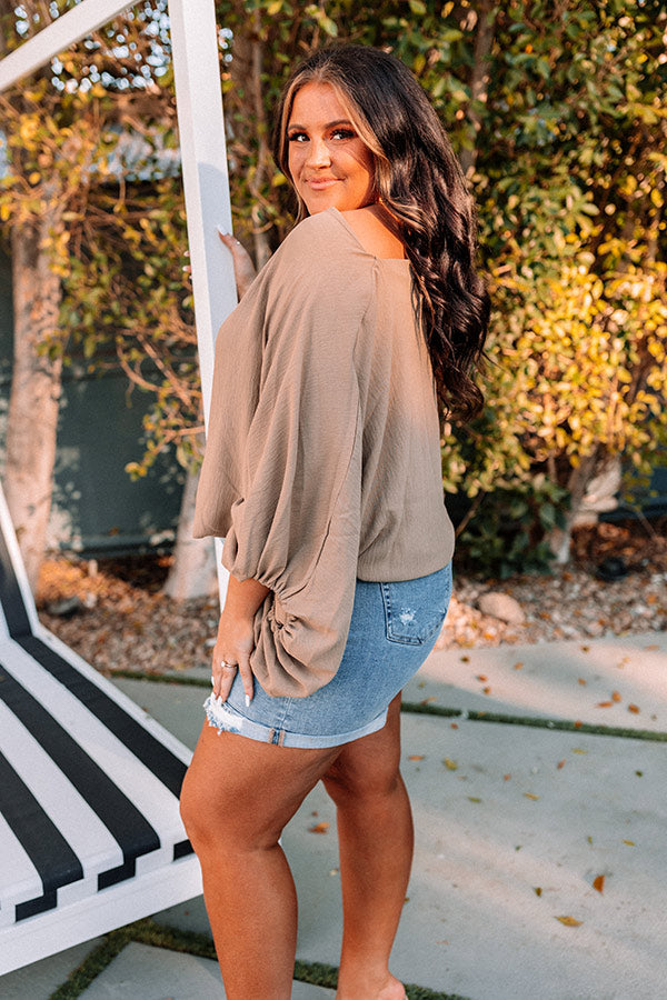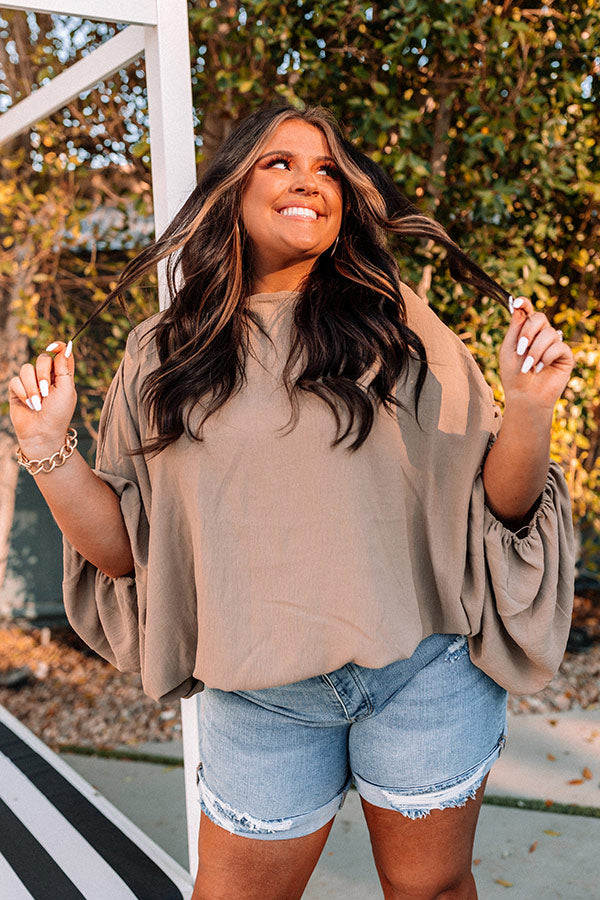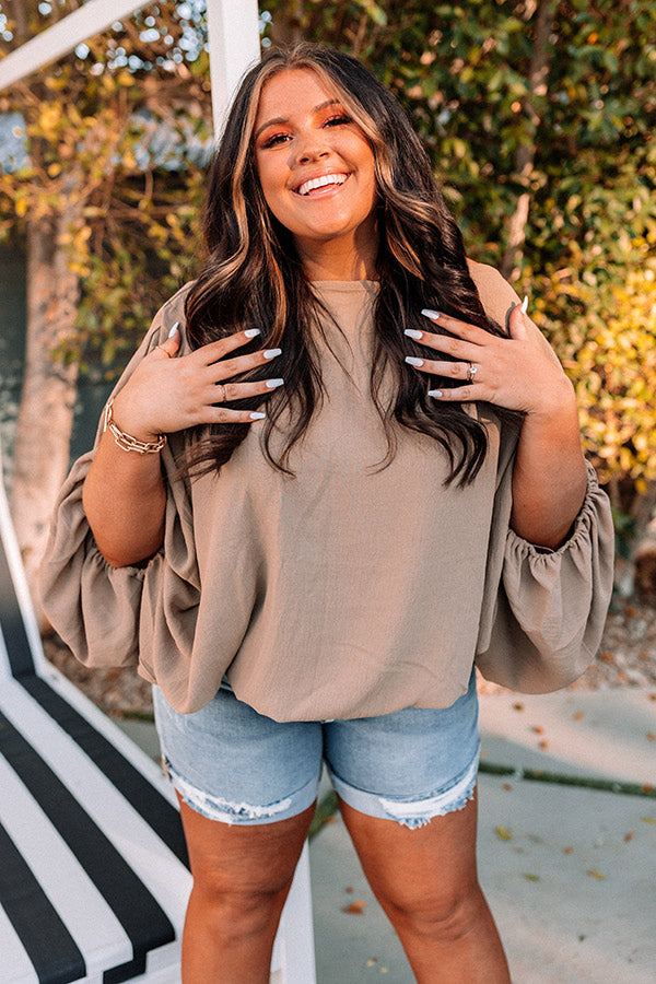 Stay simple but stylish in our basic mocha colored plus size 'Across Your Heart Shift Top' featuring lightweight material, a rounded neckline, long oversized bubble sleeves, and a slouched silhouette that falls into a straight hemline!