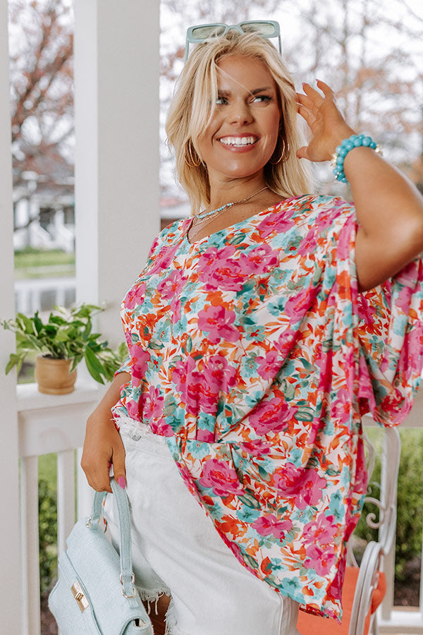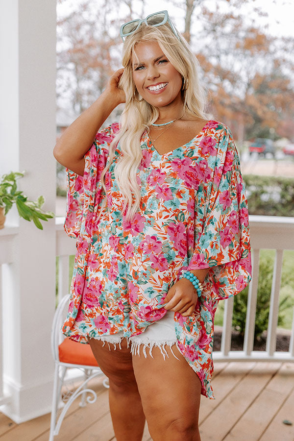 Beach Hustle Floral Shift Tunic In Peach Curves