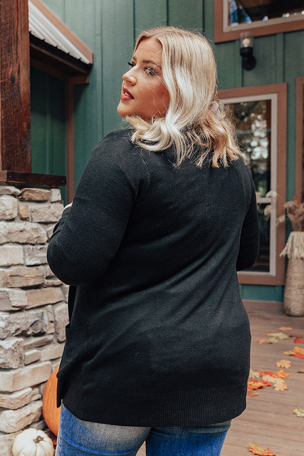 Plus Size - Effortlessly layer up with our darling black "Cabin On The Lake Cardigan" featuring ultra soft lightweight tight knit material, long loose sleeves, ribbed trim detailing, low accent side pockets, and a relaxed open front silhouette that falls into a straight tunic-length hemline!