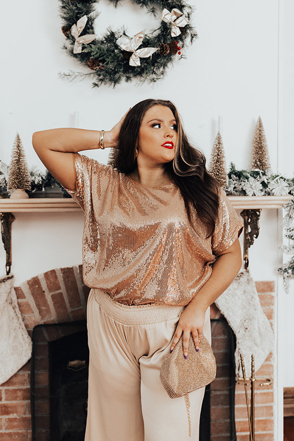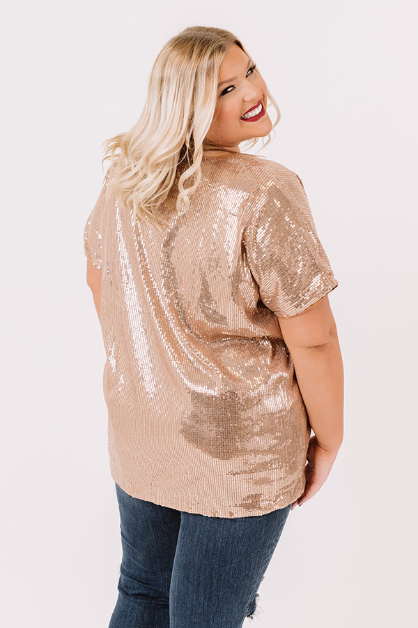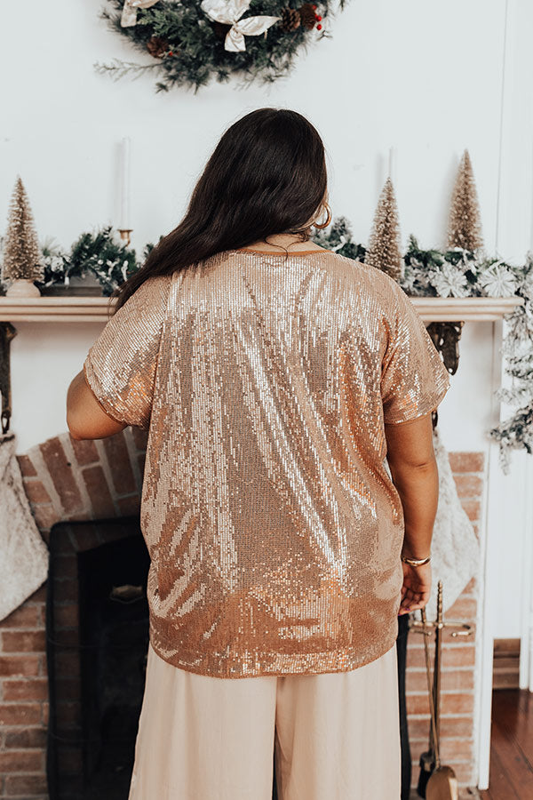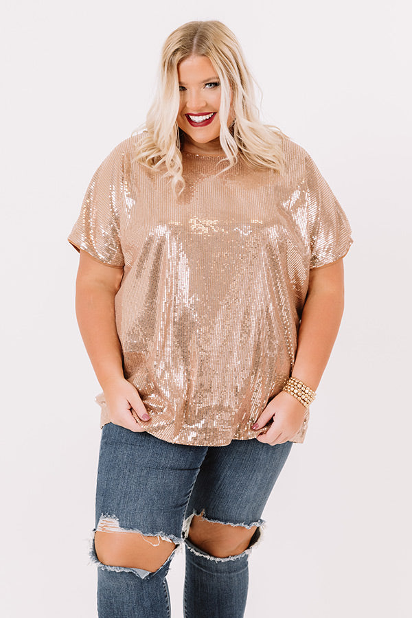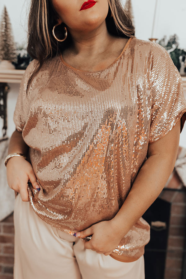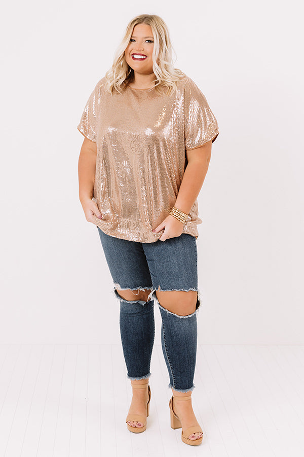 Chardonnay Chic Sequin Shift Top In Camel Curves