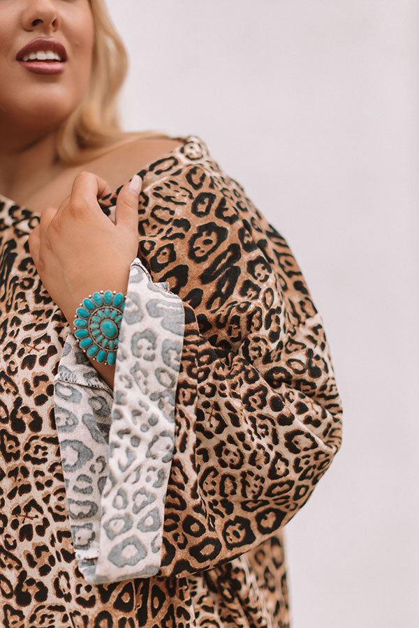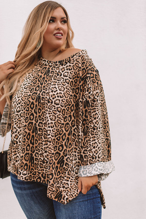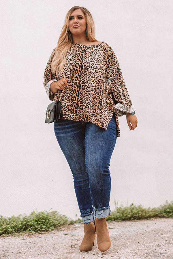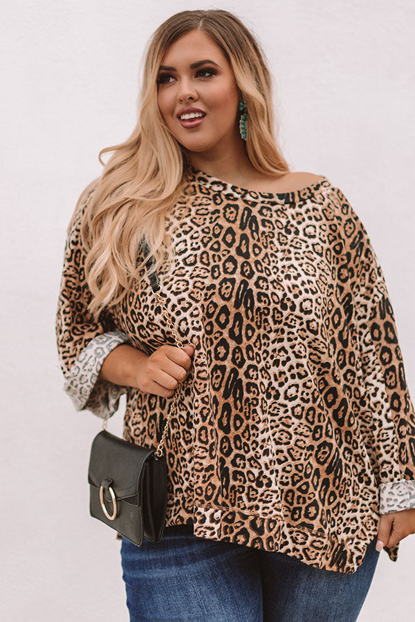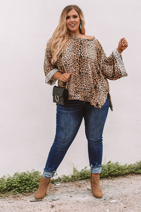Plus Size - You will be as stylish as a "Chicago socialite" when you wear this shift top featuring a bold leopard print, a high rounded neckline that can be worn off one shoulder, long oversized flared sleeves with rolled cuffs, a loose bodice, and a straight hemline with side slits! This fierce piece looks beautiful styled with cuffed skinnies, a black crossbody, turquoise jewelry, and neutral booties, or you can swap the booties for "The Lynn Over The Knee Boot in Black" and the crossbody for our "Vintage Vibes Felt Hat in Black!" Measurements