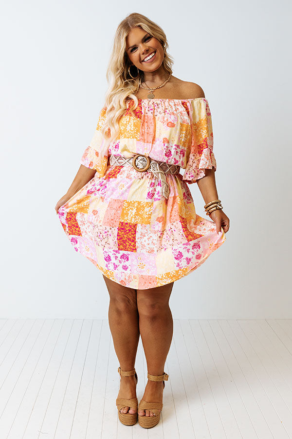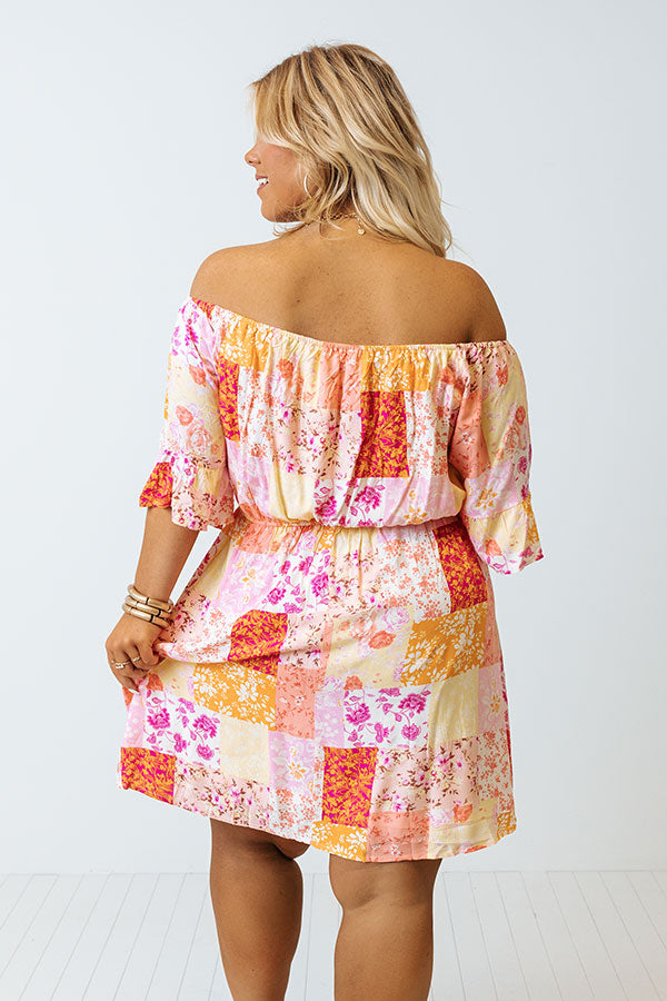 Get date night ready with this eye-catching plus size dress featuring lightweight and breezy material patterned with floral dark coral, ivory, pink, and mustard hued patchwork, a straight elastic off-shoulder neckline with loose half drop sleeves, a cinched waistline, and a relaxed skirt silhouette that falls into a straight mid-thigh length hemline! on products