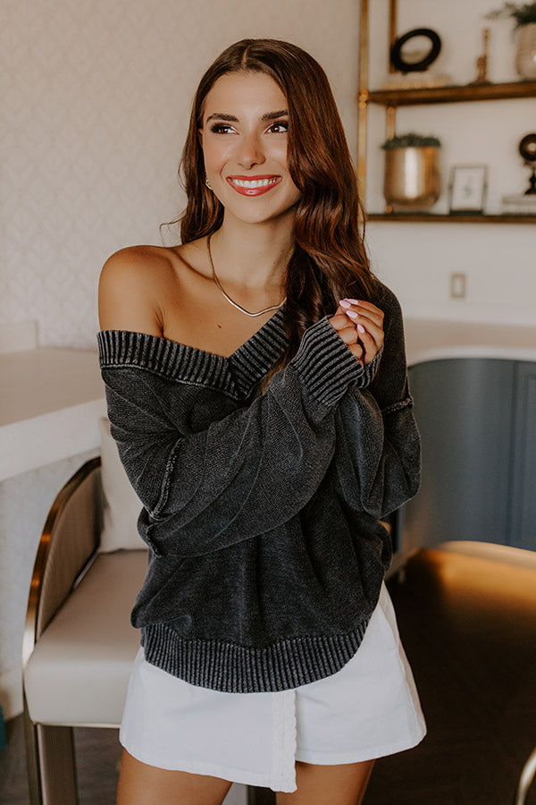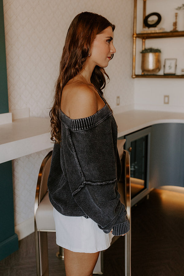 Cozy Mindset Vintage Wash Knit Sweater in Vintage Black